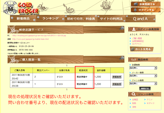 - 現在の配送状況や、ご注文履歴などをみることができます。