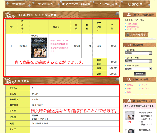 - 当サイトで、会員登録されますと、お客様が購入された商品の履歴を見ることができます。